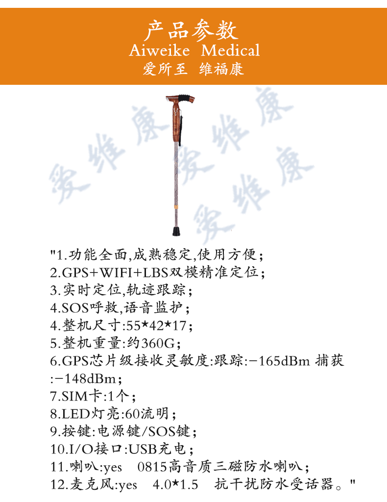 "愛維康; 4.SOS呼救,語音監護智能定位拐杖-4G全網通"