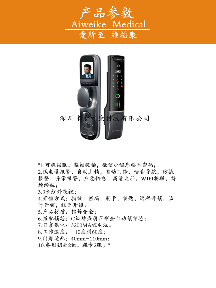愛維康自動上鎖自動門鈴語音導(dǎo)航防撬報警智能可視貓眼門鎖