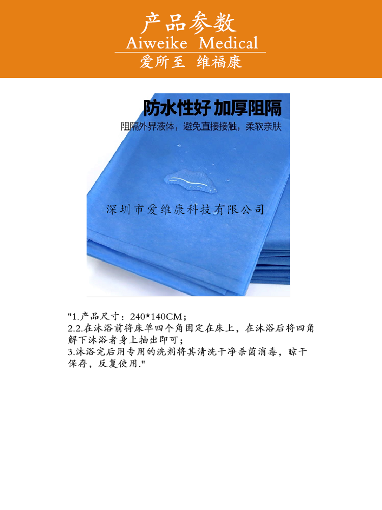 愛維康適合于床上沐浴人員用于洗澡機(jī)搭配使用多次使用防水洗浴單